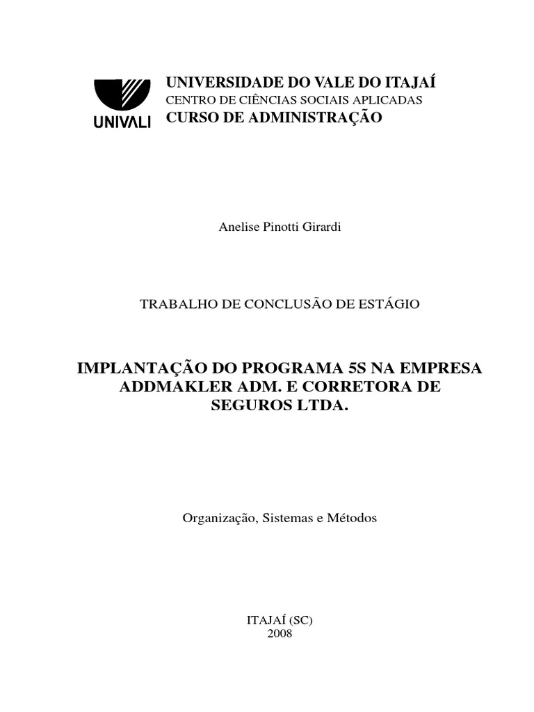 Aplicadas CECIESA/Gesto da Universidade do Vale do Itaja Univali, de 08/09/2008 a