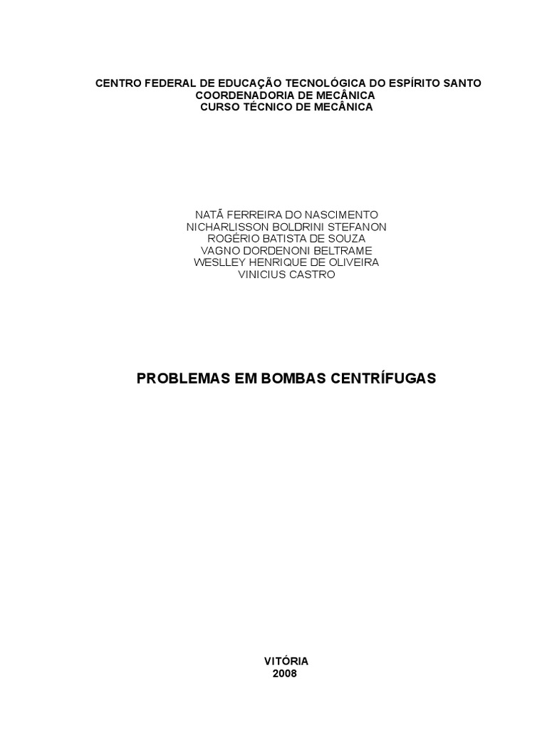 1. GOMES, Robison O. bombas hidrulicas. Vitria-ES 1995.