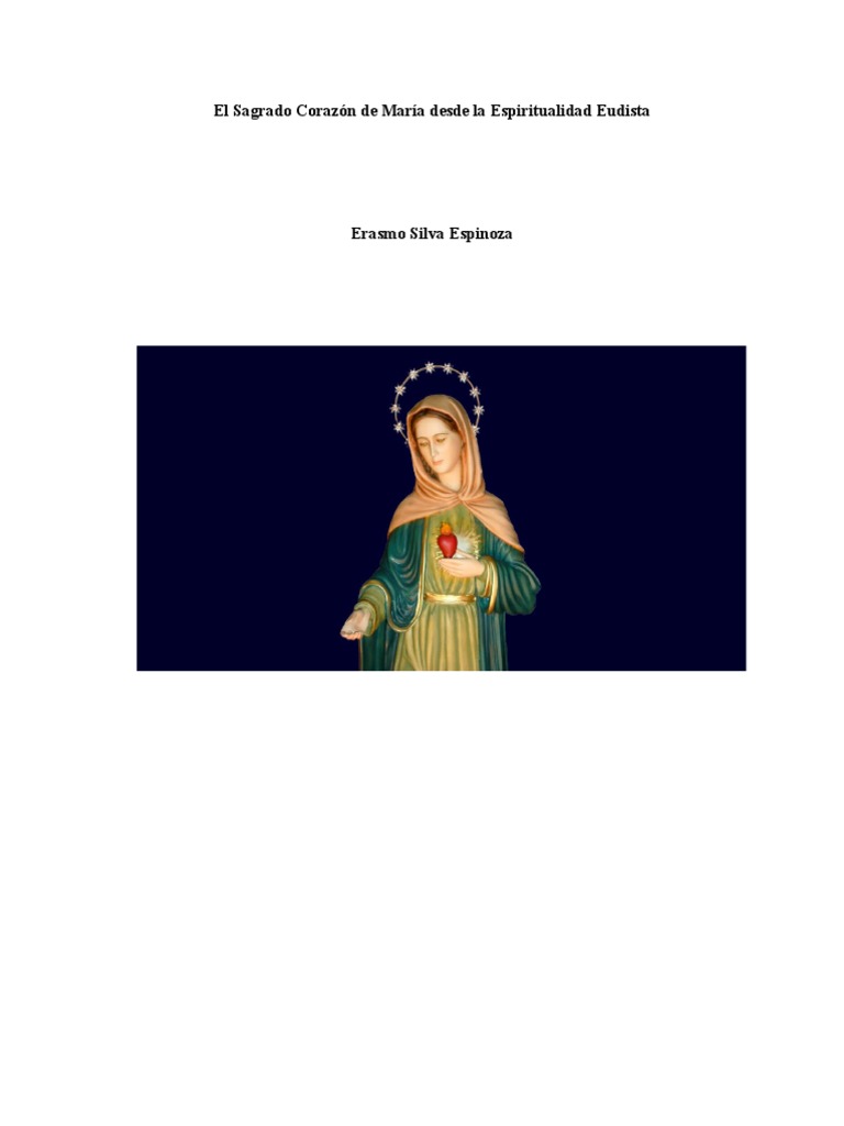 pues. fuente de la que brotó el gran río. su Corazón es modelo de vida cristiana. de su vida ministerial. de su Paternidad. de afecto y de voluntad.Corazón de María está encerrado en el Corazón de Jesús y. el martirio doloroso de este amable Corazón no puede expresarse con palabra alguna ni caber en pensamiento alguno. de su infancia. Que lo forme en su Corazón conforme a estas divinas palabras: que Cristo sea formado en ustedes (Ga 4. pues este es el primer corazón humano donde Cristo ha hecho su morada. en cierto modo. al Hijo y al Espíritu Santo. es para nosotros una gran enseñanza de vida cristiana. Somos nosotros la causa de todos los sufrimientos de esta Madre afligida. San Juan Eudes expone de manera extraordinaria lo que él ha visto en esta Madre del amor hermoso. Busquemos los medios de reparar los males que le hemos causado. que este Corazón admirable. ella nos introduce en la revelación de su grandeza. La obra de Dios en ella es para nosotros una excelente enseñanza. 19) Aceptemos. Nos enseña que ella también se convierte en palabras de gozo y de alegría dirigidas en oración al Padre. de su muerte y de su resurrección. de su amor. Conclusión La obra que Dios ha realizado en María y lo que ha producido en ella. de su nacimiento. Nuestro Padre Dios. como dice san León. ya que primero lo concibió en el Corazón que en el vientre. El Verbo increado y encarnado es el Hijo y el fruto del Corazón de María antes de ser el fruto de su vientre. es. de su pasión. Al mirar a María logramos contemplar a Dios. VII. en ella contemplamos a Cristo y nos hace escalar paulatinamente por los peldaños de sus misterios. Como el amor del Corazón maternal de la divina María para su Hijo Jesús está por encima de toda ponderación. fuente de todos los tesoros inestimables y de las maravillas inenarrables que se encierran en ese divino río. . además ellos están enlazados por unidad de sentimientos. Este Verbo admirable quiere que su santa Madre lo produzca por generación espiritual antes de producirlo por generación corporal. por amor ha hecho que el Verbo se encarne en María y ella ha visto que su Corazón ha producido y dado nacimiento al Verbo.