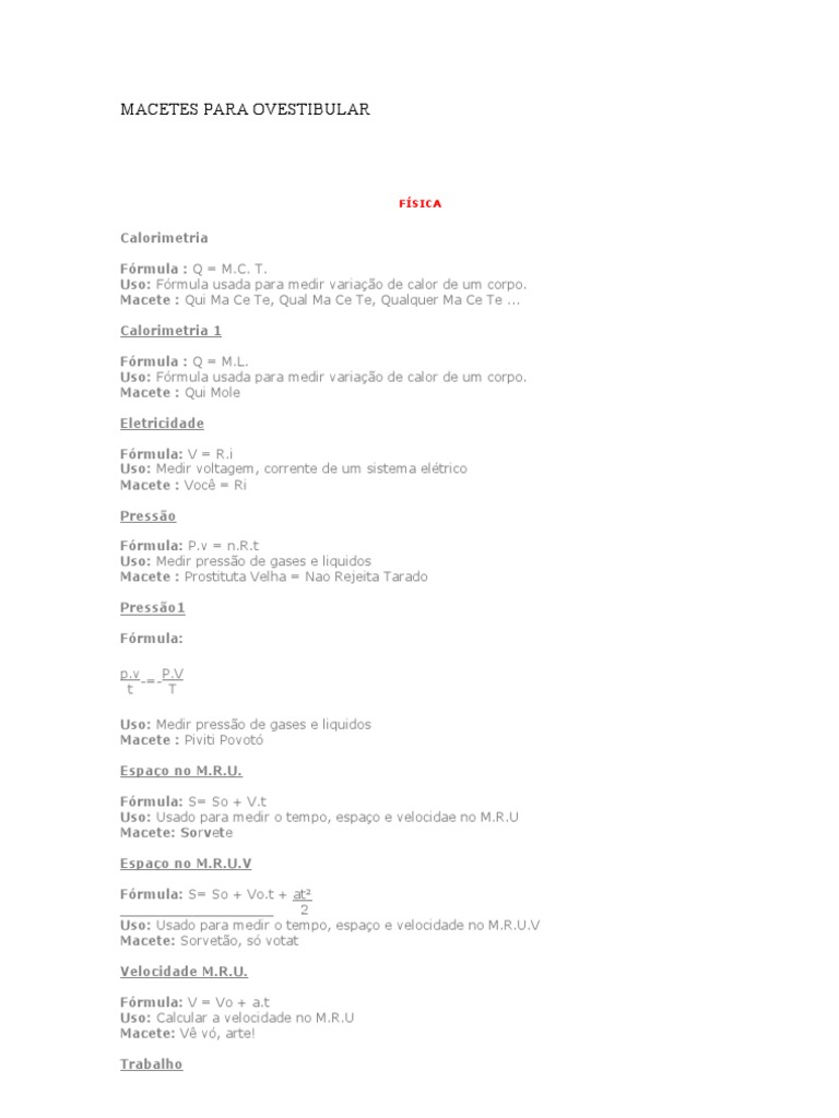 Macete: Usar os macetes que estão em frente às fórmulas e prestar muita atenção nos sinais