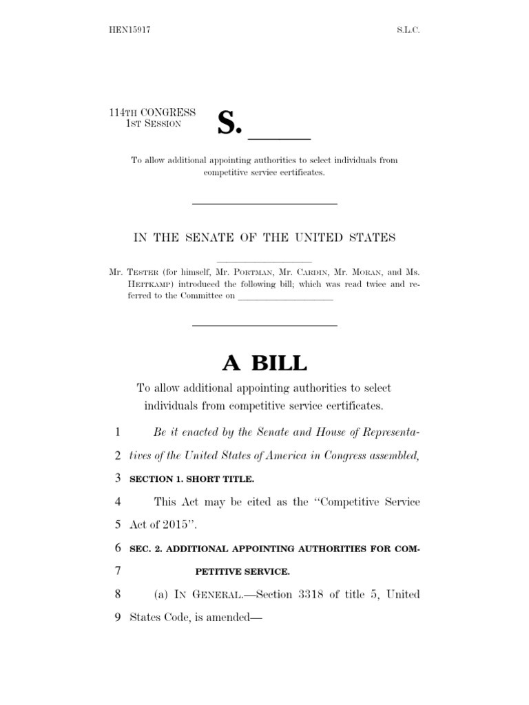 To allow additional appointing authorities to select individuals from competitive service certificates.
