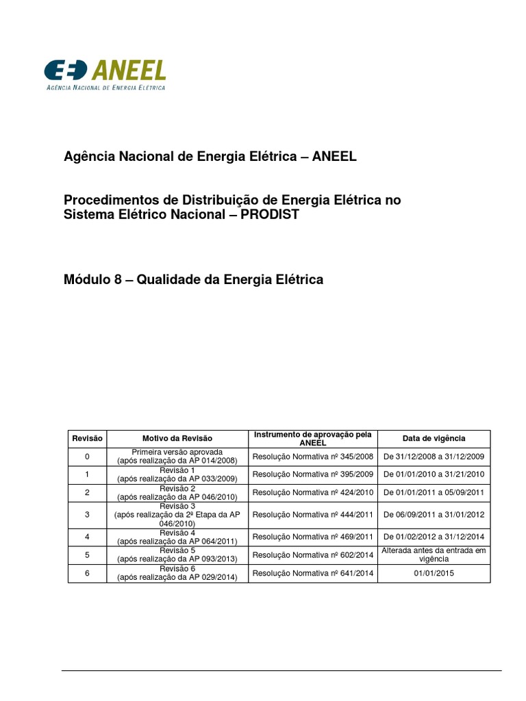 Estabelecer os procedimentos relativos qualidade da energia eltrica - QEE, abordando a