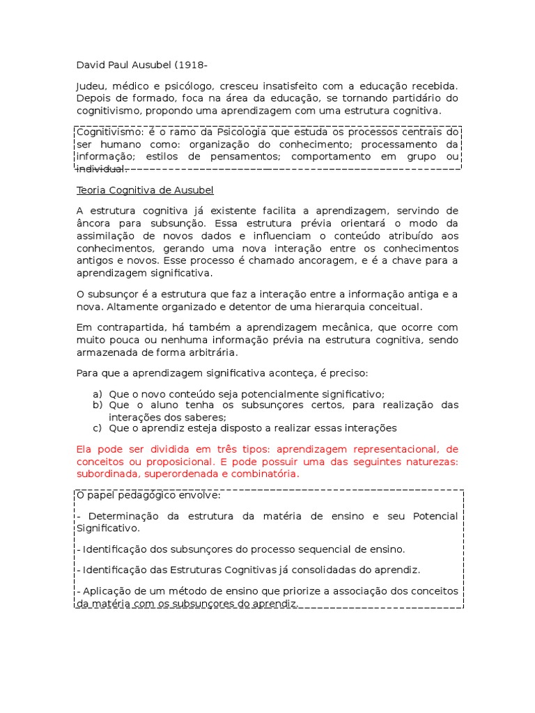 David Paul Ausubel (1918Judeu, mdico e psiclogo, cresceu insatisfeito com a educao recebida.