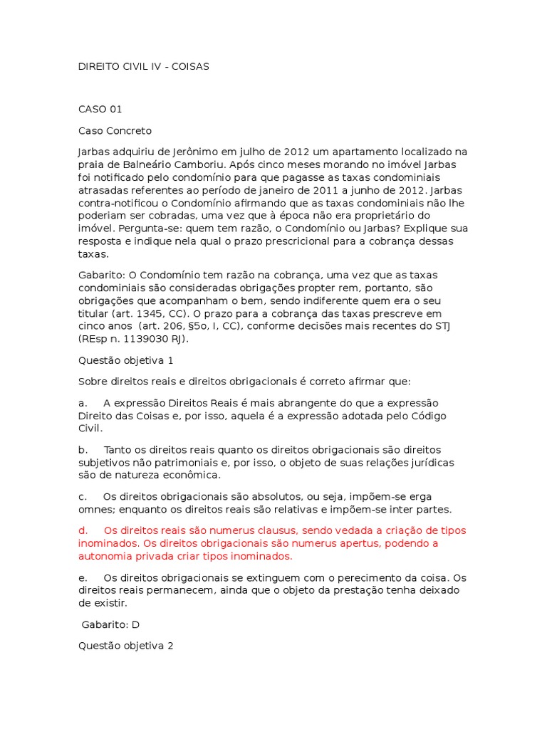 Gabarito: O Condomnio tem razo na cobrana, uma vez que as taxas