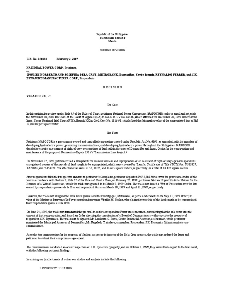 maintenance of the proposed Dasmarias-Zapote 230 kV Transmission Line Project. Respondent S.K. Dynamics prayed that said portion be