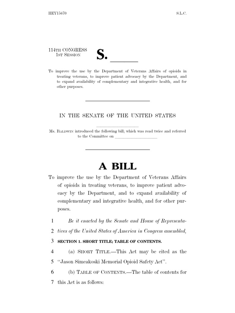 To improve the use by the Department of Veterans Affairs of opioids in treating veterans, to improve patient advo-cacy by the Department, and to expand availability of complementary and integrative health, and for other pur-poses.