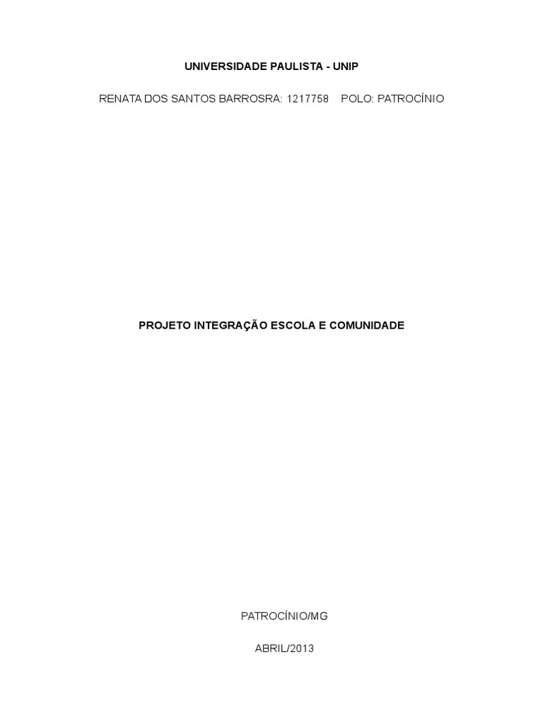 PROJETO INTEGRAO ESCOLA E COMUNIDADE