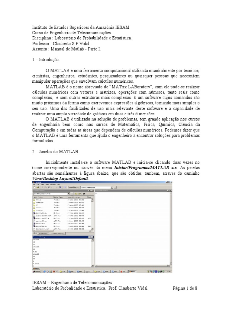 O MATLAB uma ferramenta computacional utilizada mundialmente por tcnicos,