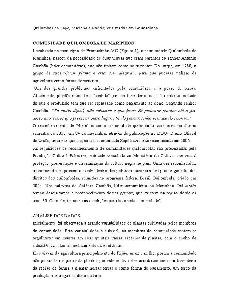 Localizada no municpio de Brumadinho-MG (Figura 1), a comunidade Quilombola de