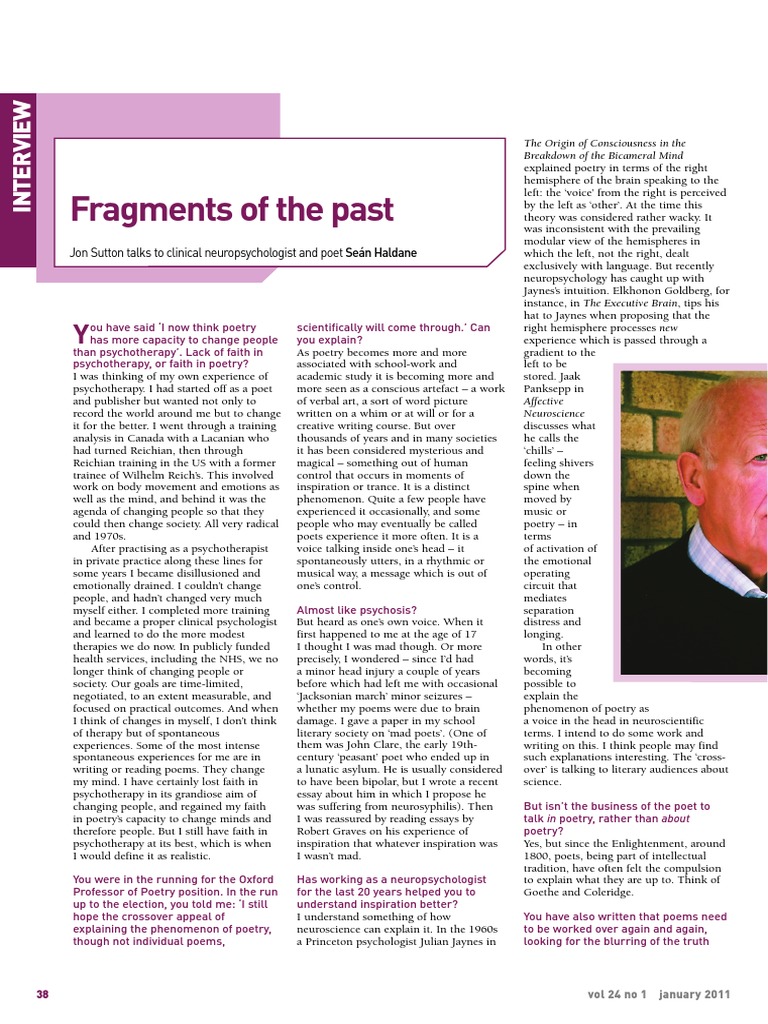 before which had left me with occasional ‘Jacksonian march’ minor seizures – whether my poems were due to brain damage. I gave a paper in my school