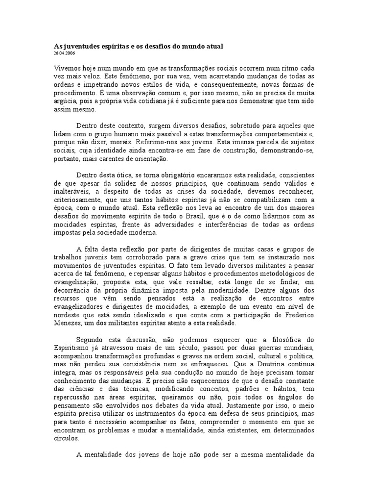 movimentos de juventudes espritas. O fato tem levado diversos militantes a pensar