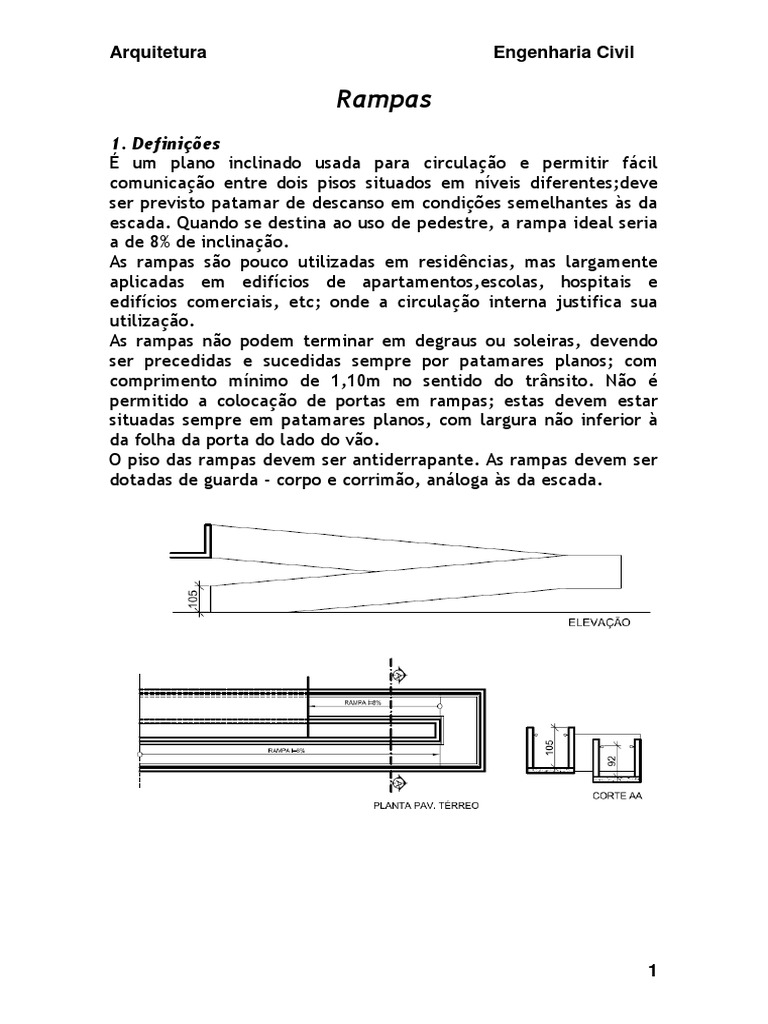 escada. Quando se destina ao uso de pedestre, a rampa ideal seria