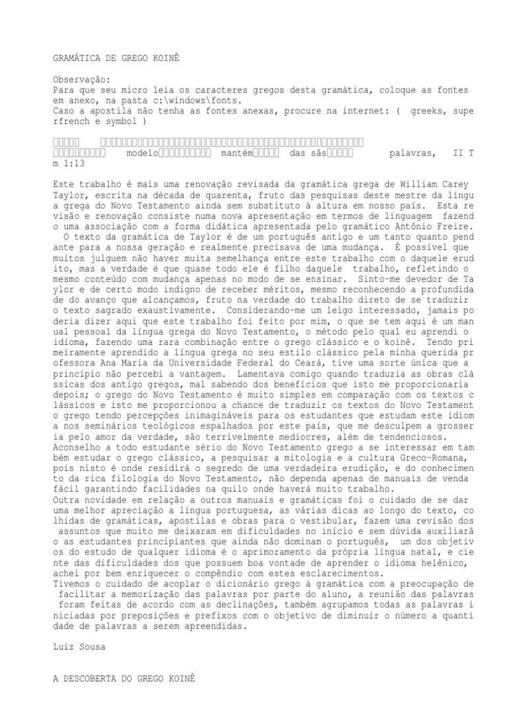 Para que seu micro leia os caracteres gregos desta gramática, coloque as fontes