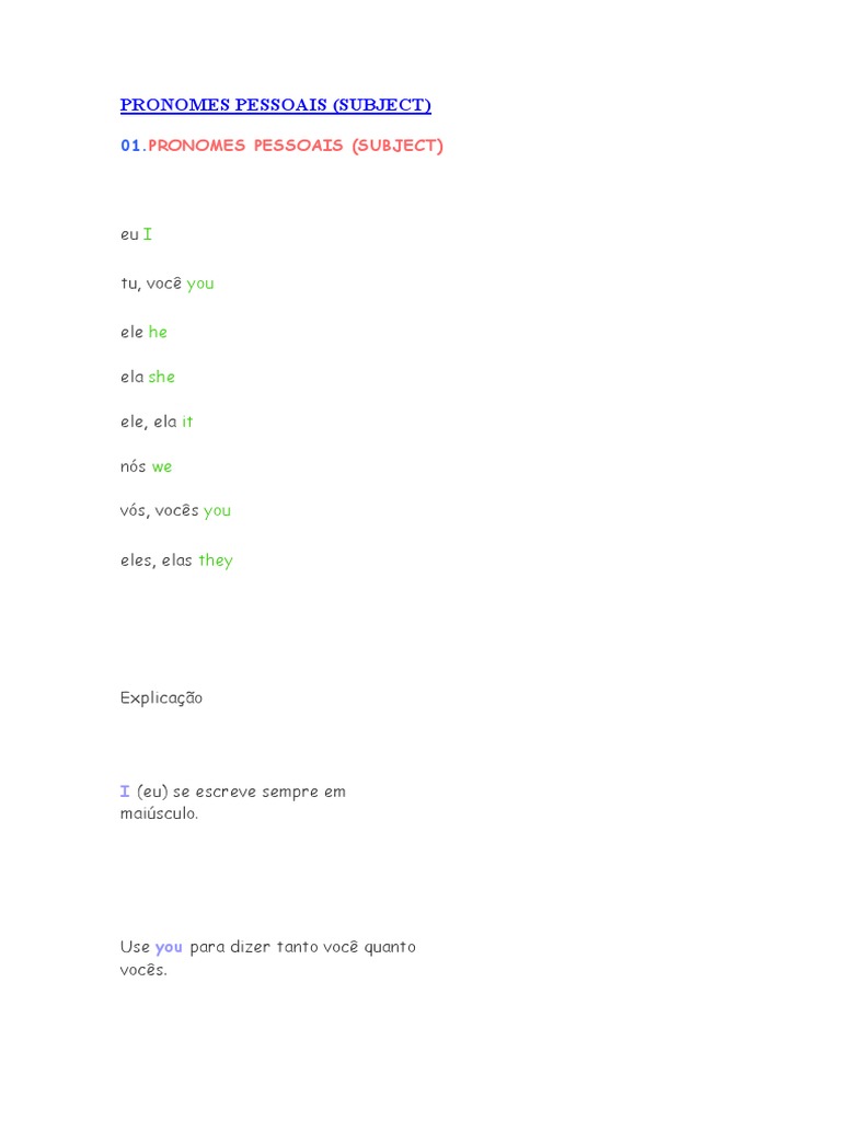 he, she, it, we , you, they) ou um nome prprio (Carl, Susan, Bill and Jane,