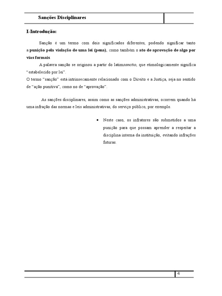 sanes disciplinares. A sano administrativa a conseqncia jurdica da prtica de uma