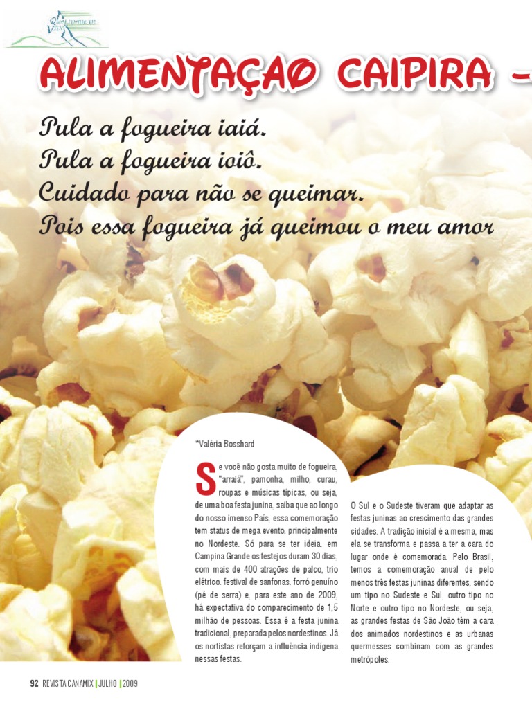 quando naturalmente nosso corpo “pede” Com cheiro de pipoca, gosto de pamonha aquecida de aguardente, açúcar, gengibre e