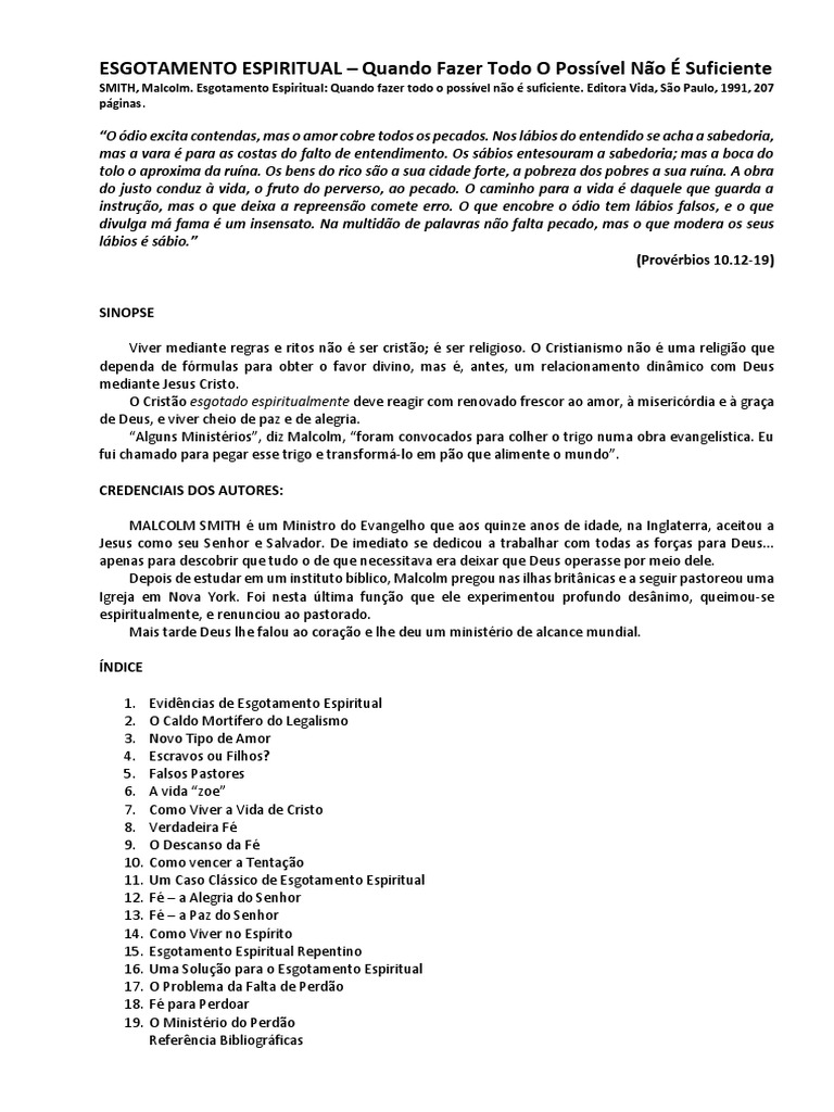 Esgotamento Espiritual - Resumo Analítico Comentado