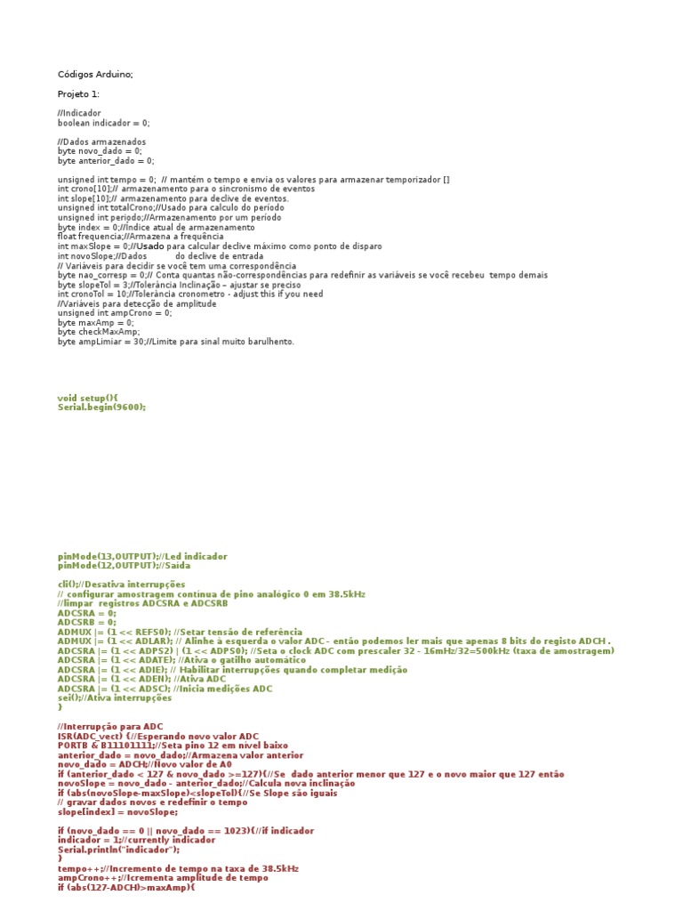 Códigos para Projeto Arduino