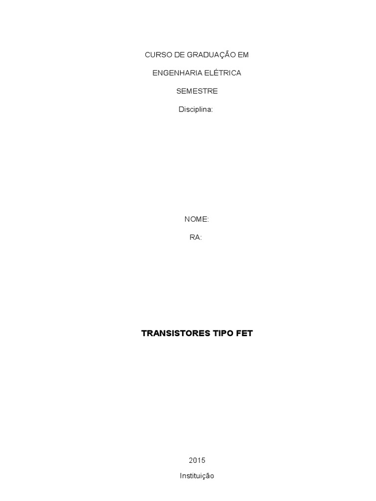O transistor de efeito de campo(FET), constitudo de material semicondutor,