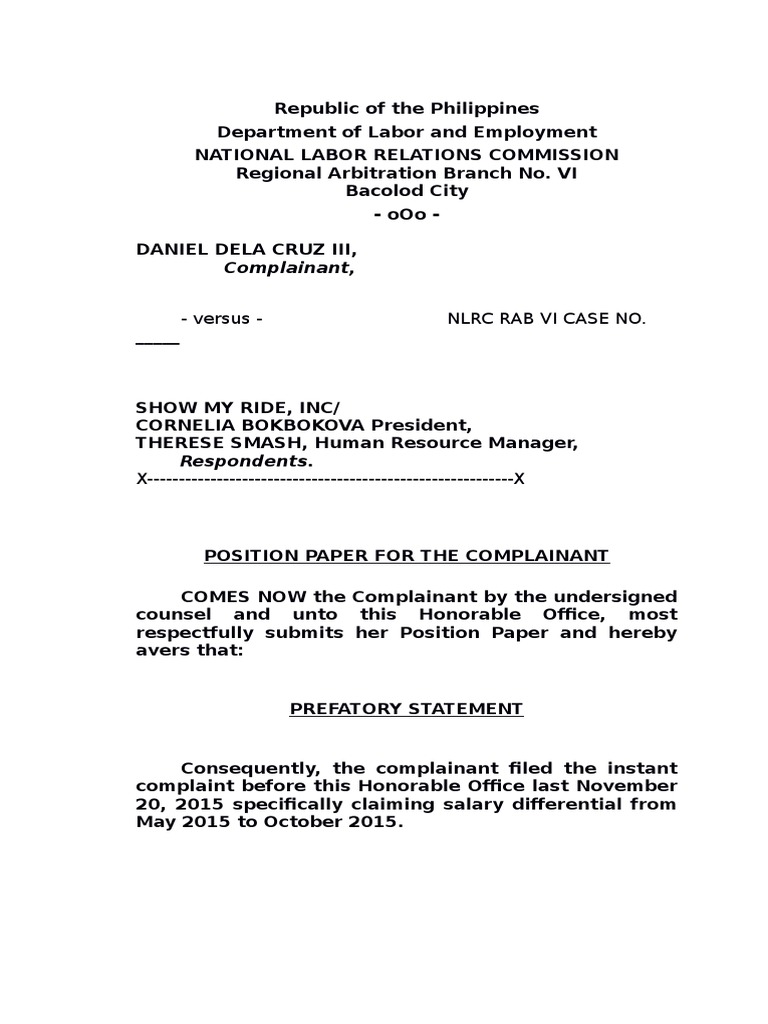 POSITION PAPER FOR THE COMPLAINANT