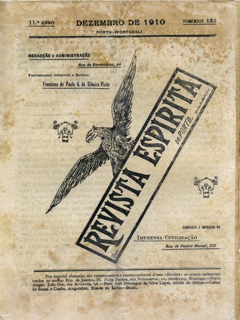 A «Revista Espírita», mensalmente publicada na cidade do Porto, em Portugal, particularmente os seus números de Outubro, Novembro e Dezembro de 1910, tem estas medidas: 24,5 cm x 17 cm.
