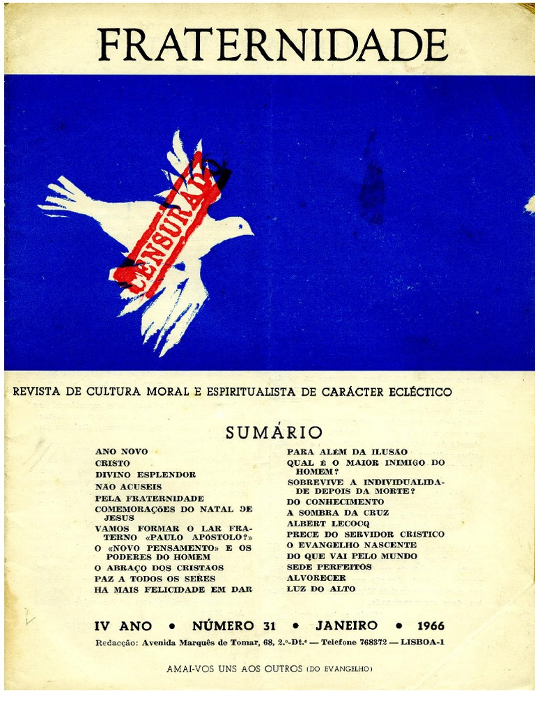 Revista «Fraternidade», de janeiro de 1966, dirigida por José dos Reis Pires, tendo como proprietário e editor Eduardo F. Matos.