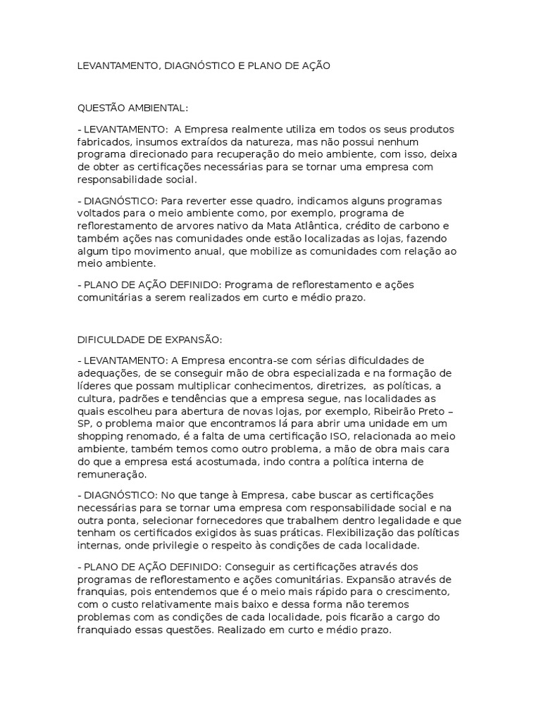 - LEVANTAMENTO: Identificamos que a empresa no possui um plano de