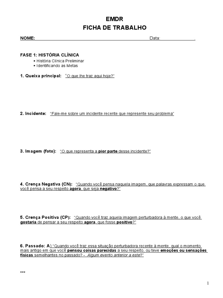 Informar sobre o EMDR e continuar somente aps Consentimento