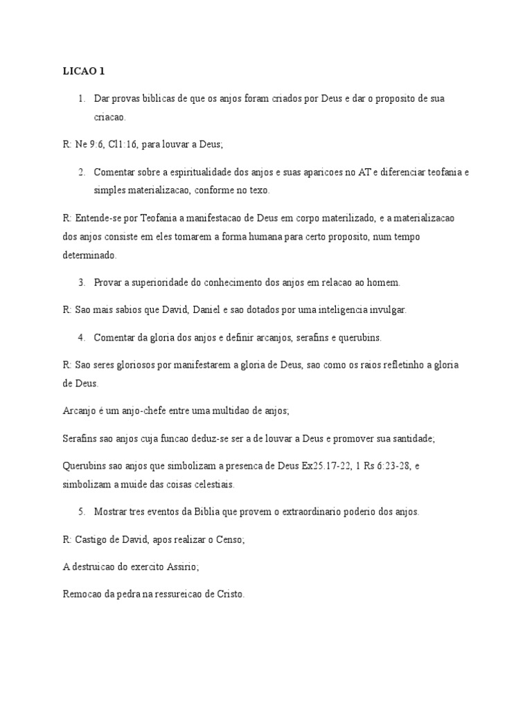 1. Dar provas biblicas de que os anjos foram criados por Deus e dar o proposito de sua