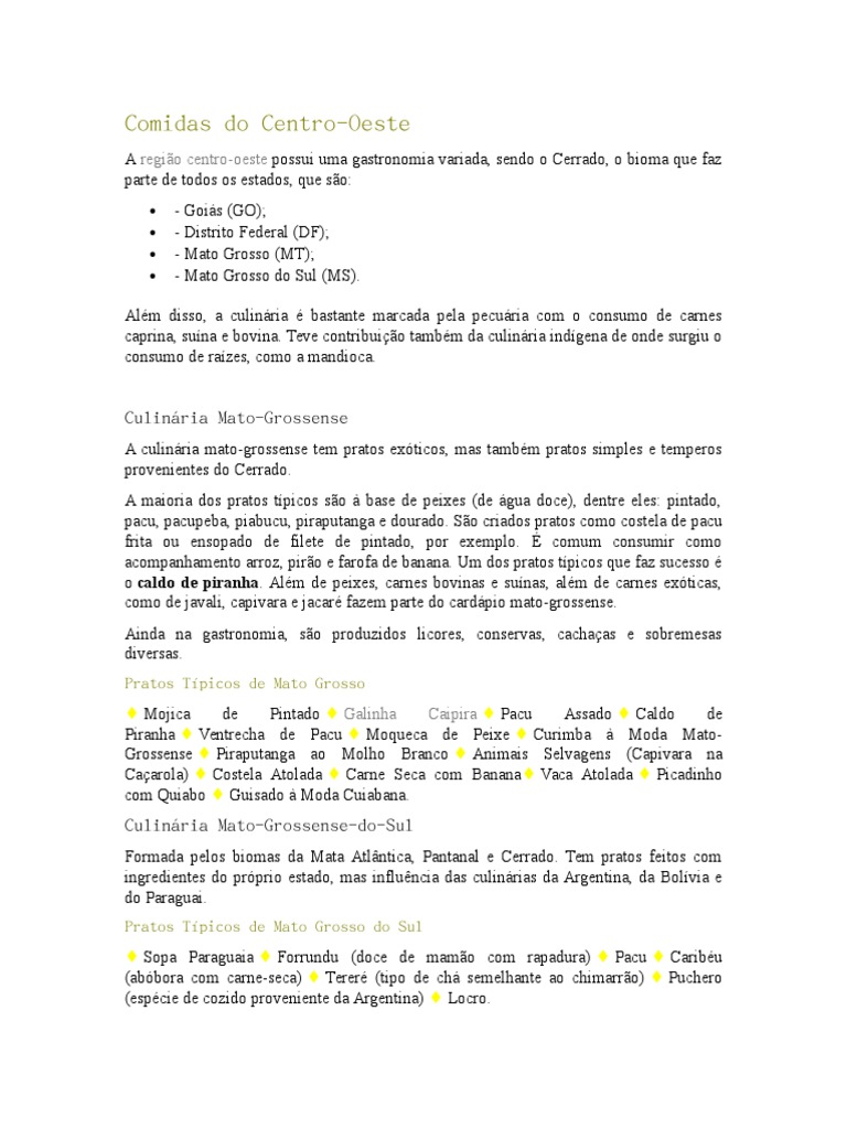 sobre a gastronomia do Centro-Oeste do Brasil, regio formada pelos estados de Mato