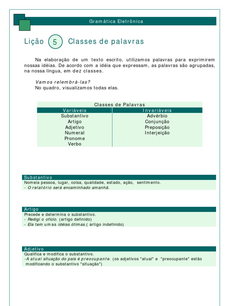 O estudo de verbo será feito mais detalhadamente na lição 7.