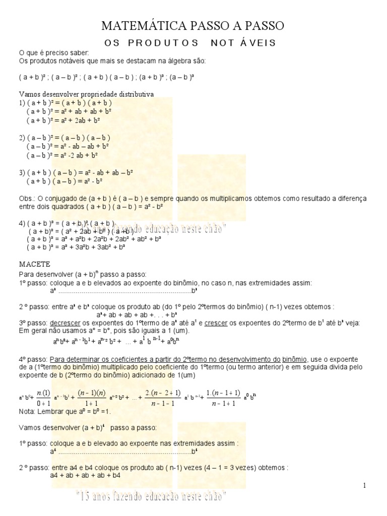 IMPORTAMTÍSSIMO: SABER DESENVOLVER PRODUTOS NOTÁVEIS É ASSUNTO BÁSICO DE MATEMÁTICA; POR
