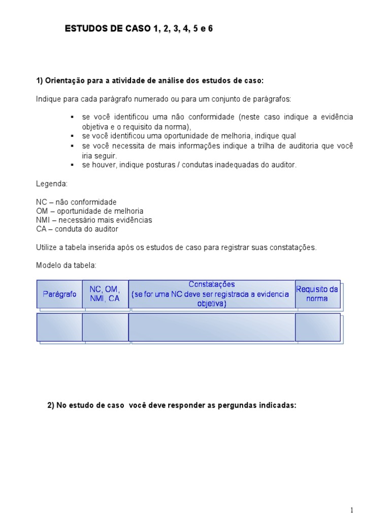 Utilize a tabela inserida aps os estudos de caso para registrar suas constataes.