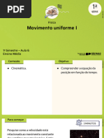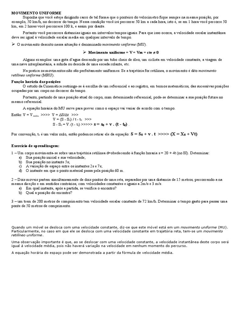 Quando um mvel se desloca com uma velocidade constante, diz-se que este mvel est em um movimento uniforme (MU).