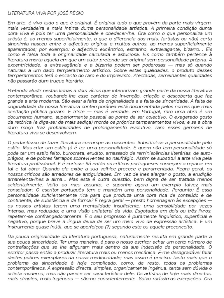 documento humano, superiormente pessoal ao ponto de ser colectivo. O exagerado gosto