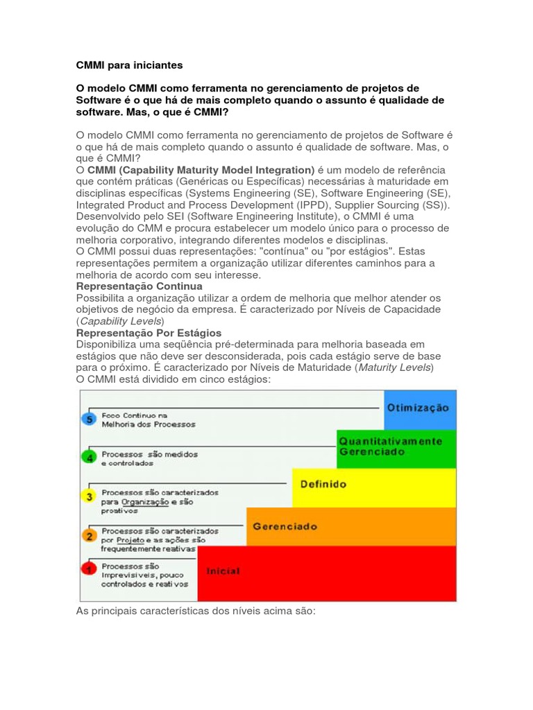 O CMMI (Capability Maturity Model Integration) um modelo de referncia