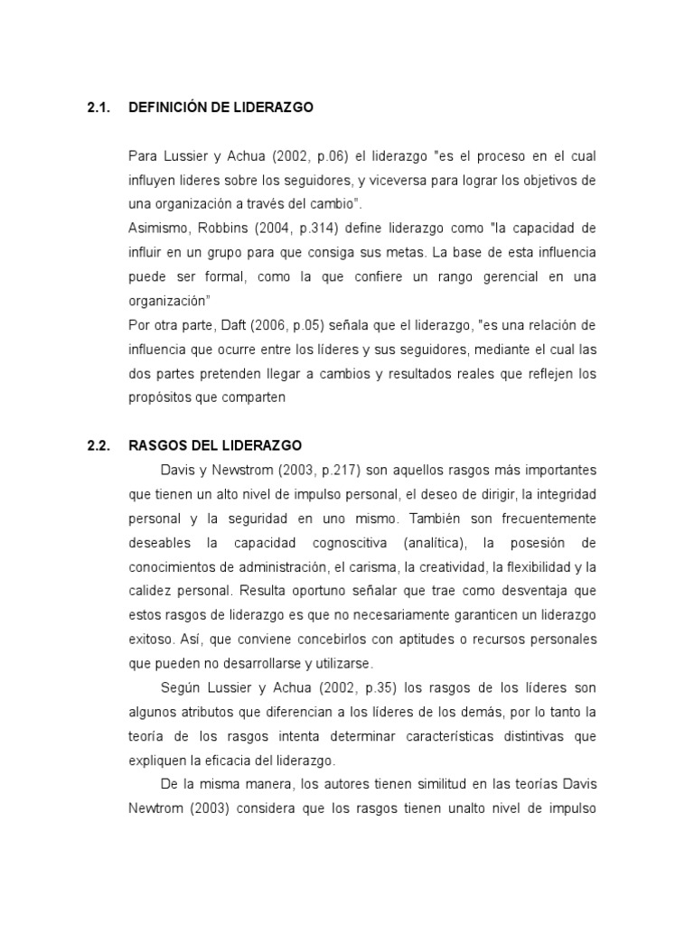 Para Lussier y Achua (2002, p.06) el liderazgo "es el proceso en el cual
