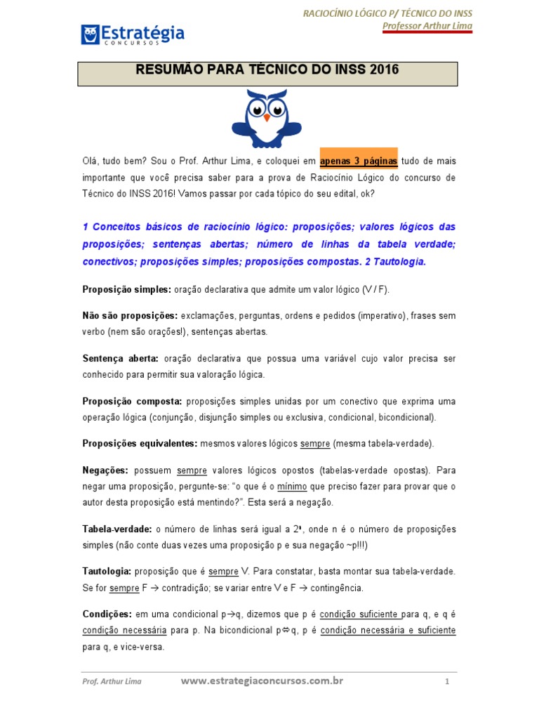 Ol, tudo bem? Sou o Prof. Arthur Lima, e coloquei em apenas 3 pginas tudo de mais
