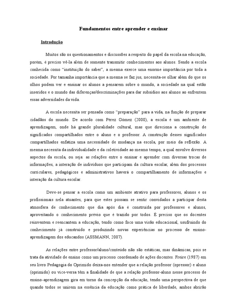 ensinar e aprender no se pauta em somente o professor passar a matria e o aluno