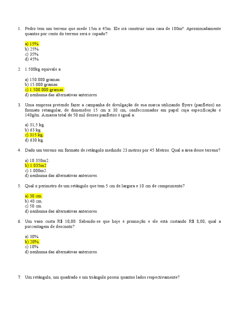 4. Dado um terreno em formato de retngulo medindo 23 metros por 45 Metros. Qual a rea desse terreno?