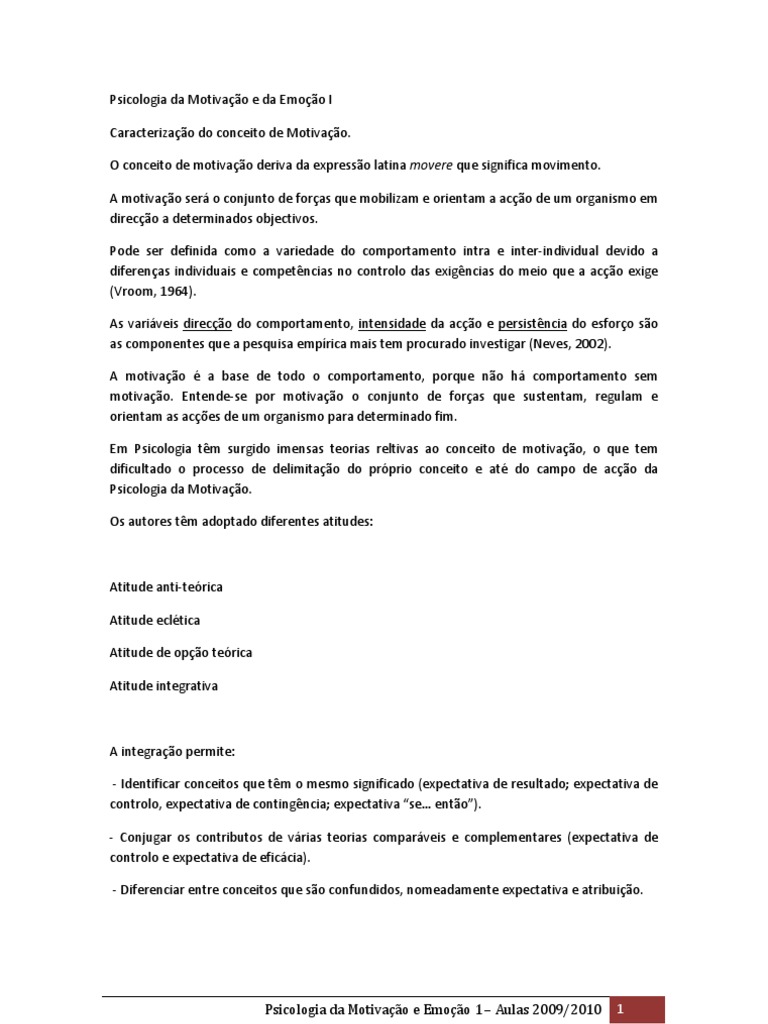 Apontamentos - Psicologia Da Motivação e Da Emoção I