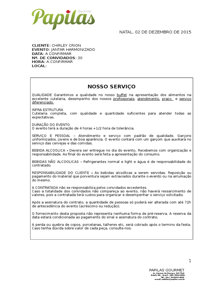 uniformizados, jovens e de boa aparncia. O evento contar com um garom que auxiliar no