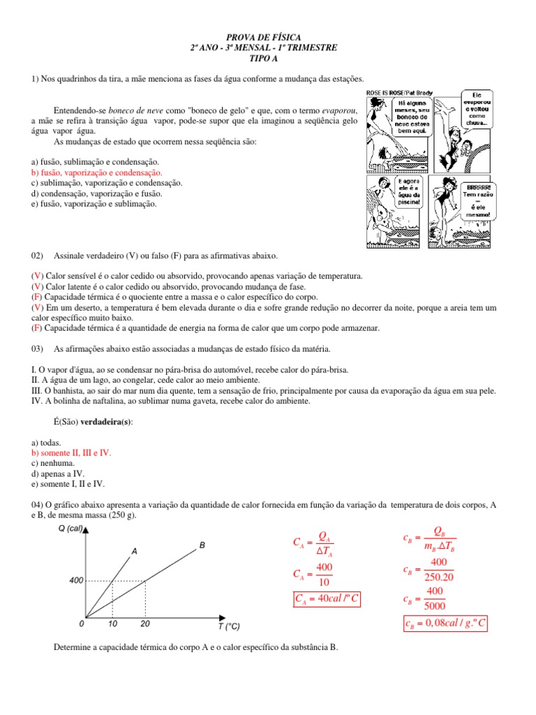 Determine a capacidade trmica do corpo A e o calor especfico da substncia B.