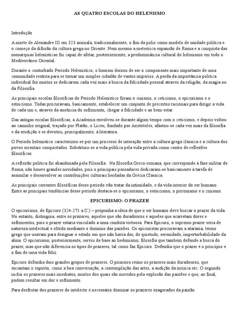 AS QUATRO ESCOLAS DO HELENISMO