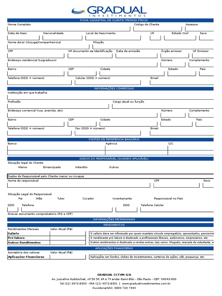 Assinatura do RESPONSVEL NA GRADUAL CCTVM S/A