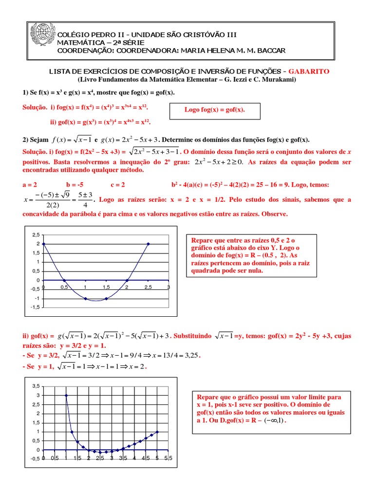 x 1 =y, temos: gof(x) = 2y2 - 5y +3, cujas