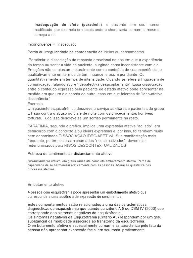 entre o contedo expresso pelo paciente eo estado afetivo pode apresentar na