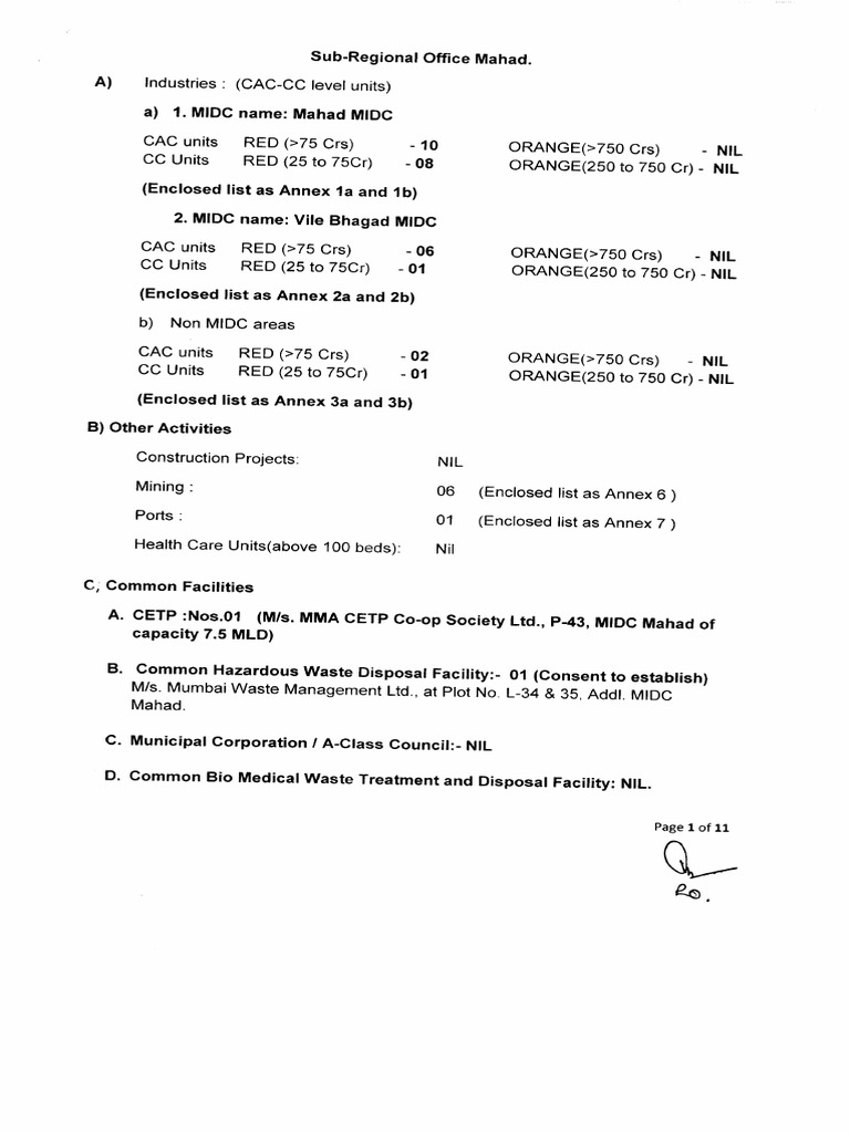 A. CETP :Nos.01 (Mis. MMA CETP Co-op Society Ltd., P-43, MIDC Mahad of