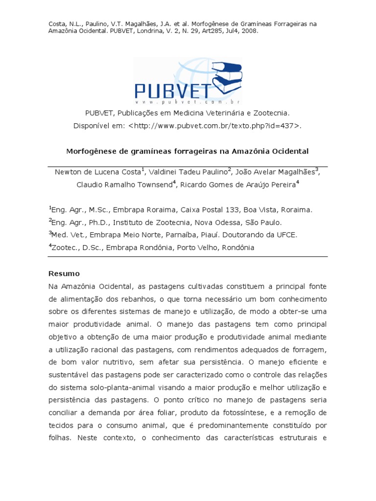 Costa, N.L., Paulino, V.T. Magalhães, J.A. et al. Morfogênese de Gramíneas Forrageiras na