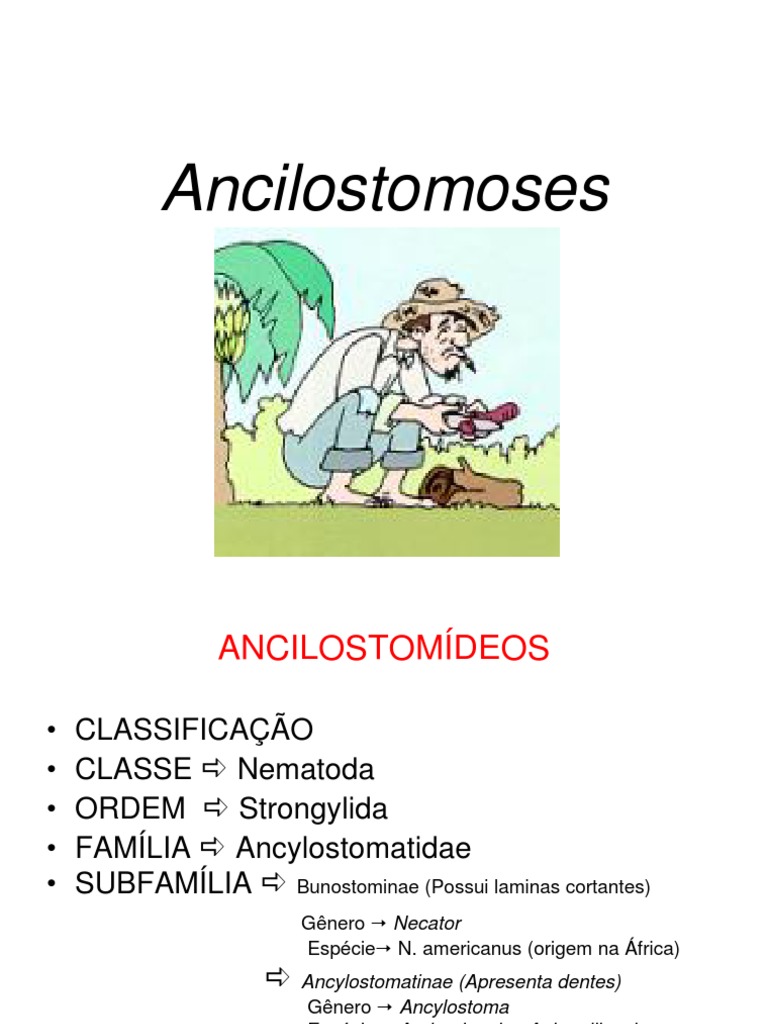 Os ancilostomdeos A. duodenale e N. americanus tem uma